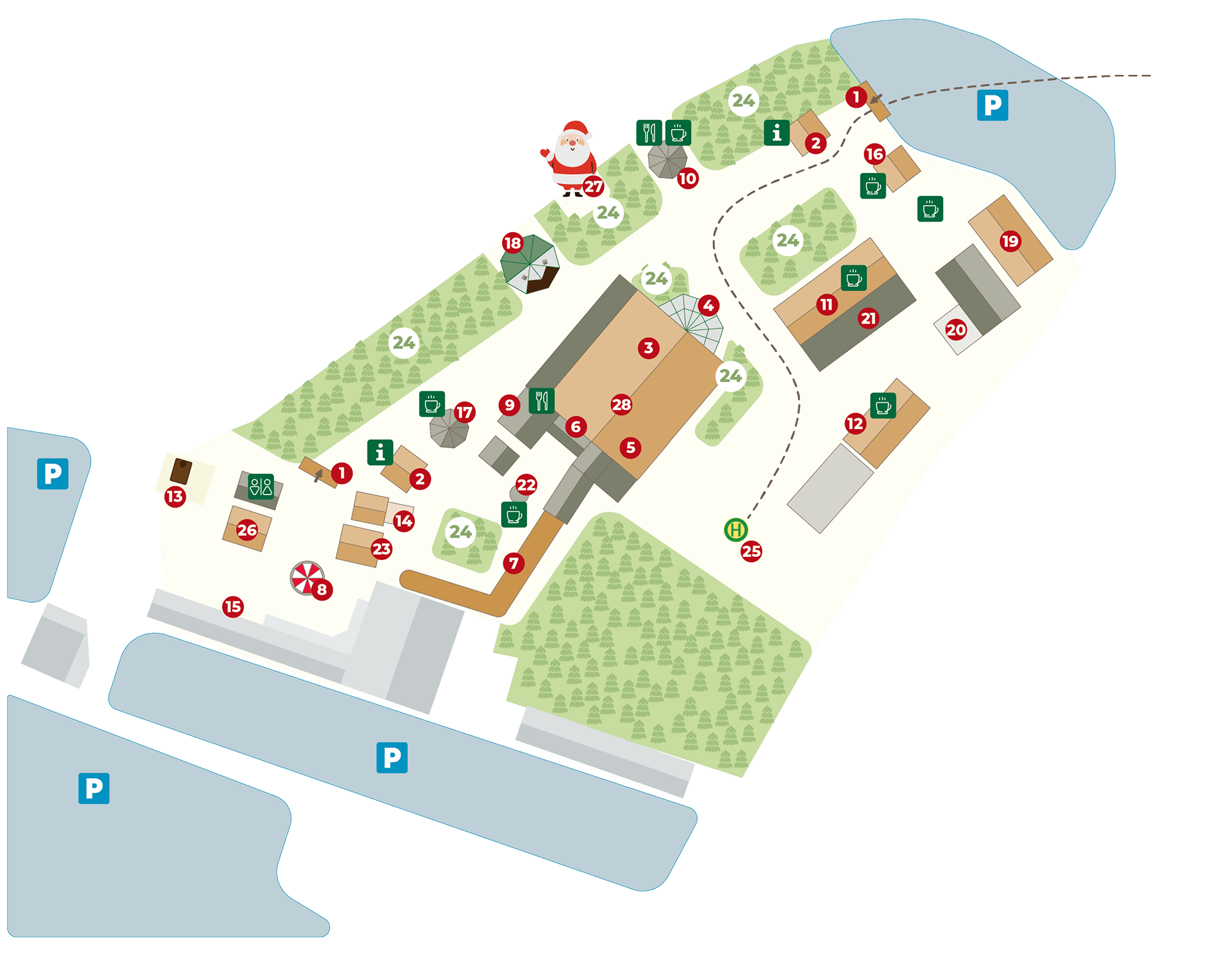 Märchenlandscheune & Café (beheizt), Wunschbriefkasten, Weihnachtsbaumausstellung